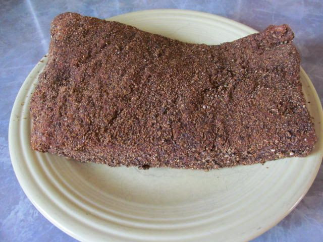 What is in the rub?  The exact recipe is in the link above, but the main ingredients are coriander, black pepper, and brown sugar.